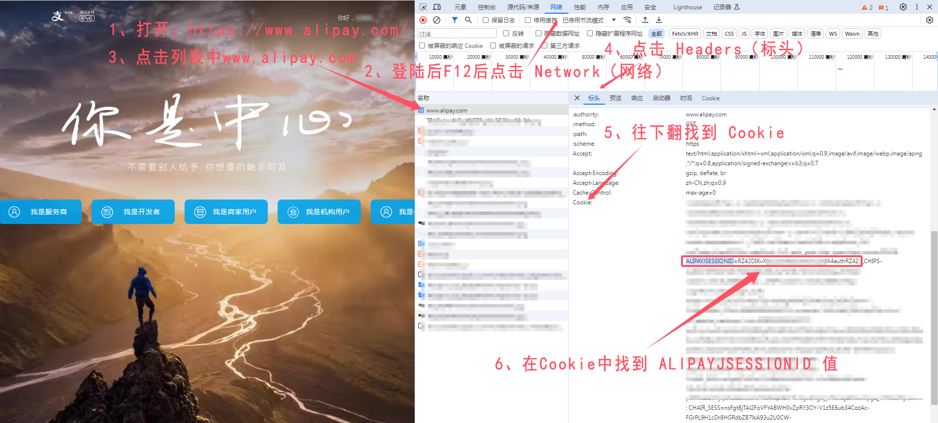| cookie | 是 | string | 支付宝 Cookie 中 ALIPAYJSESSIONID 值 怎么获取 cookie ? |