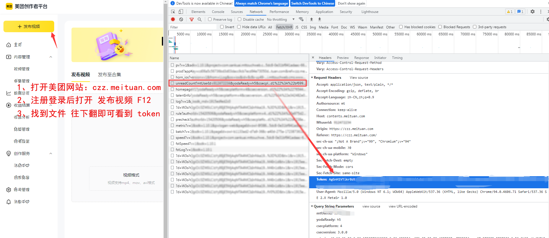 | token | 是 | string | 美团创作者开放平台 token 值 怎么获取token? |